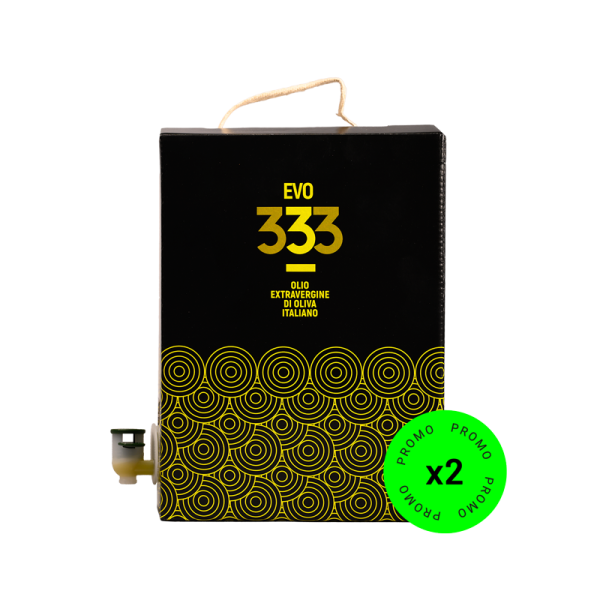 Buy now 2 Bag in Box of 3 liters of superior quality Italian EVO oil. A convenient, sustainable, and smart format to bring the “authenticity of” Italian artisan EVO 333 extra virgin oil to the table every day. The ideal choice for families and kitchens that do not compromise.