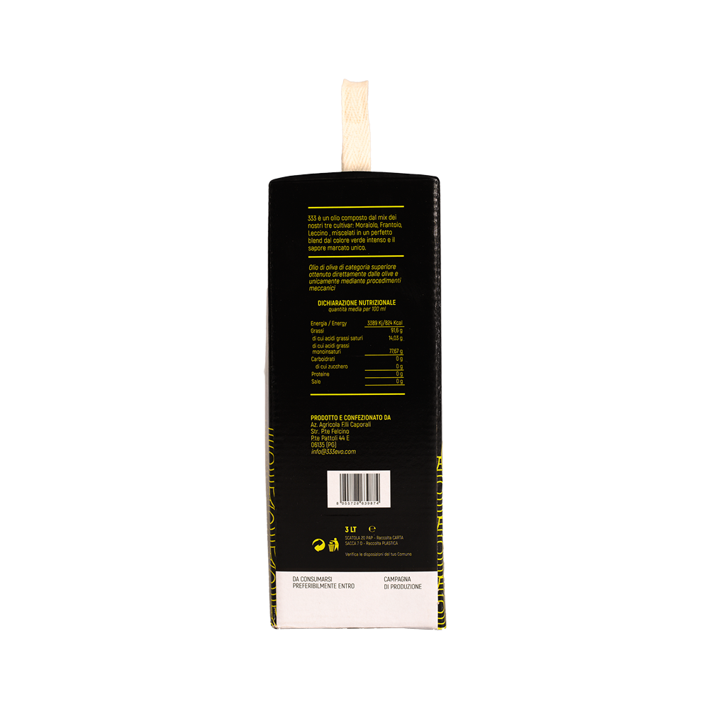 If you are looking for quantity without compromising on quality, the Bag in Box EVO 333 – Extra Virgin Olive Oil Umbria Colli del Trasimeno, 2025 harvest, is the perfect choice. Ideal for families, restaurants or anyone who regularly consumes high-quality extra virgin olive oil.